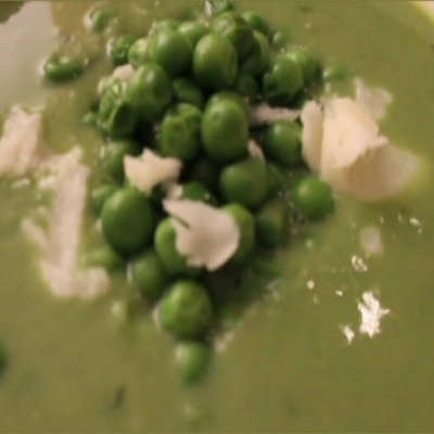 A megfőtt borsószemekből egy kisebb adagot különszedünk, a többit viszont a főzőedényben a vízzel merülő mixelővel ledaráljuk, majd hozzáadjuk a feldarabolt mentát, a tejszínt és a tejet. Újra daráljuk, majd vissza tesszük a főzeléket a tűzre. Közben a vajat ugyanannyi liszttel elkeverjük, és belemorzsoljuk a főzelékbe. Kettőt kavarintunk és kész is a főzelék!